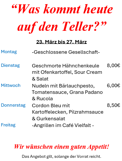 22 Menschen mit psychischer Erkrankung können im Rahmen der Eingliederungshilfe von Montags bis Freitags je nach Interesse im Stadtteilcafé „Café Vielfalt“ und/oder dem „Atelier Freistil“ eine geregelte Tagesstruktur erlangen, in dem sie einer sinnstiftenden Tätigkeit nachgehen. Individuelle Erprobung in unterschiedlichen Arbeitsfeldern, persönliche Entwicklung und Stabilisierung stehen im Vordergrund.